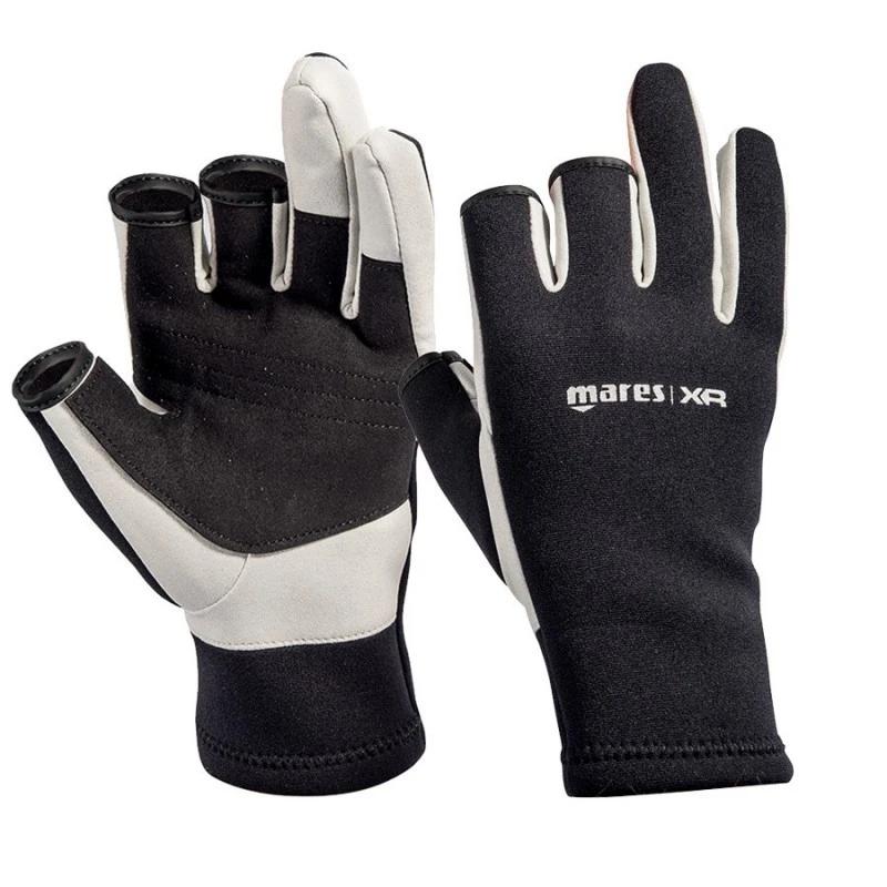 Les mitaines TEK AMARA de la gamme XR de Mares sont des gants dont les premières phalanges du pouces, de l’index & du majeur sont coupées.