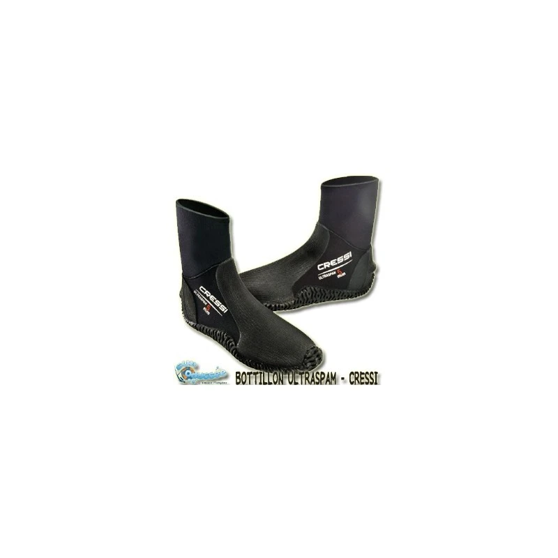 Bottillons Cressi ULTRASPAM 5mm conçus pour être utilisés avec des palmes de plongée réglables.